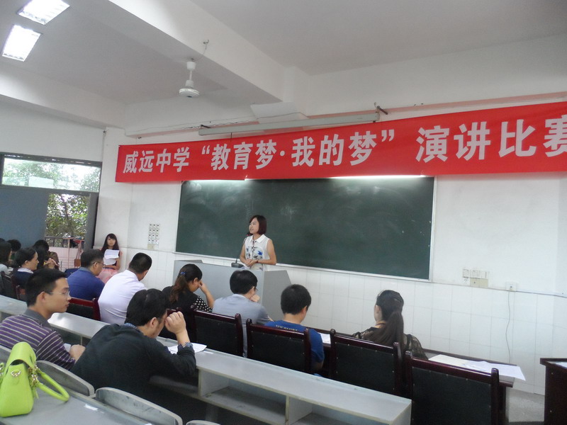 此次演讲比赛共有9位教师参加,代表学校各个学科小组,他们以《中国梦靠我们的梦来实现》、《我的中国梦》、《我的梦、梦中国》等为演讲题目,进行了精彩的演讲。他们不仅自信富有激情,而且用抑扬顿挫的演讲和惟妙惟肖的表演,展示了“十年树木,百年树人”的深厚内涵;他们通过表达自己的感动来表达威远中学教师们追梦的决心与信仰,呼唤中国梦、教育梦的心声,更表达了希望能通过自己的梦想让祖国更加富强、更加文明、更加和谐的愿望。