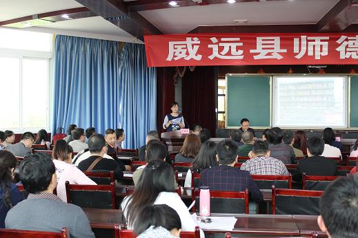 2016年4月18日下午,威远县首场师德巡回报告会在我校博学楼三楼会议室举行。县教育局相关领导、全县优秀教育工作者代表及威远中学校全校教职员工三百余人现场聆听了我县三位“最美教师”的先进事迹报告。