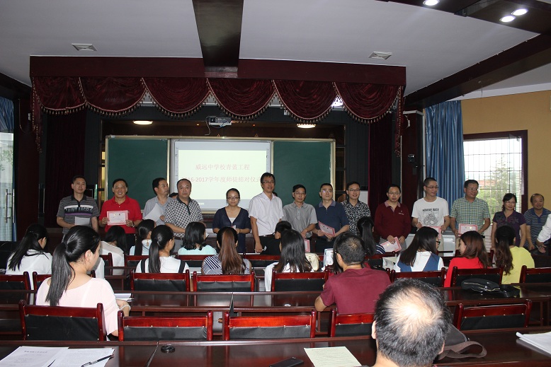 2016年9月13日,威远中学举行了“青蓝工程”师徒结对仪式,23名“老”教师和27名新教师参加了本次活动,活动由分管教育科研的副校长卢燕明同志主持。
