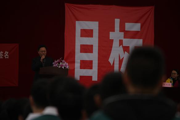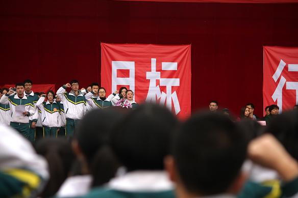 随后,庄严的国歌响起,学生代表首先作表态发言。他号召全体同学要带着必胜的决心,抓好每一堂课,每一节自习,每一道题目,每一个知识点,并许下诺言:不负父母的期盼,不负恩师的厚望,不负学校的荣光,不负青春的理想。表达了决战高考的信心和斗志,也表达了对美好前程的渴望与激情。